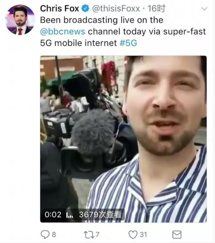 另一名記者Chris Fox則沒有進行畫面直播,只有文字報道。他在倫敦街頭使用華為5G時不時在推特上發段小視頻,臉上露出驕傲的笑容,稱這網速「超級快」。他回到辦公室後寫了一篇文章--《5G:EE啟動英國次時代移動網絡》,表示此前各路媒體在現場進行報道時,一次必須連接多個4G網絡進行報道,而這次BBC記者僅憑1張Sim卡就完成了直播。