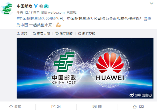 6月5日,中国邮政集团公司与华为公司签署战略合作协议。根据协议,双方将在金融业务、科技创新、寄递物流、人才培养等方面开展深入合作,在分布式架构、咨询规划、智慧物流、智慧园区、云计算、大数据、SDN敏捷网络、智慧网点转型、绿色节能数据中心和敏捷分支等领域加强合作,开展新技术前瞻性课题研究,共同探索ICT新技术在中国邮政金融、寄递、邮务三大业务板块的应用, 共同促进中国邮政ICT数字化转型。中国邮政与华为还将联合成立“中国邮政·华为新技术应用实验室”,中国邮政储蓄银行与华为将联合成立“邮政储蓄银行·华为联合创新中心”。