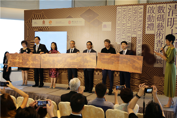 《清明上河圖3.0》數碼藝術香港展覽舉行啟動禮上嘉賓合照。記者馮瀚文攝