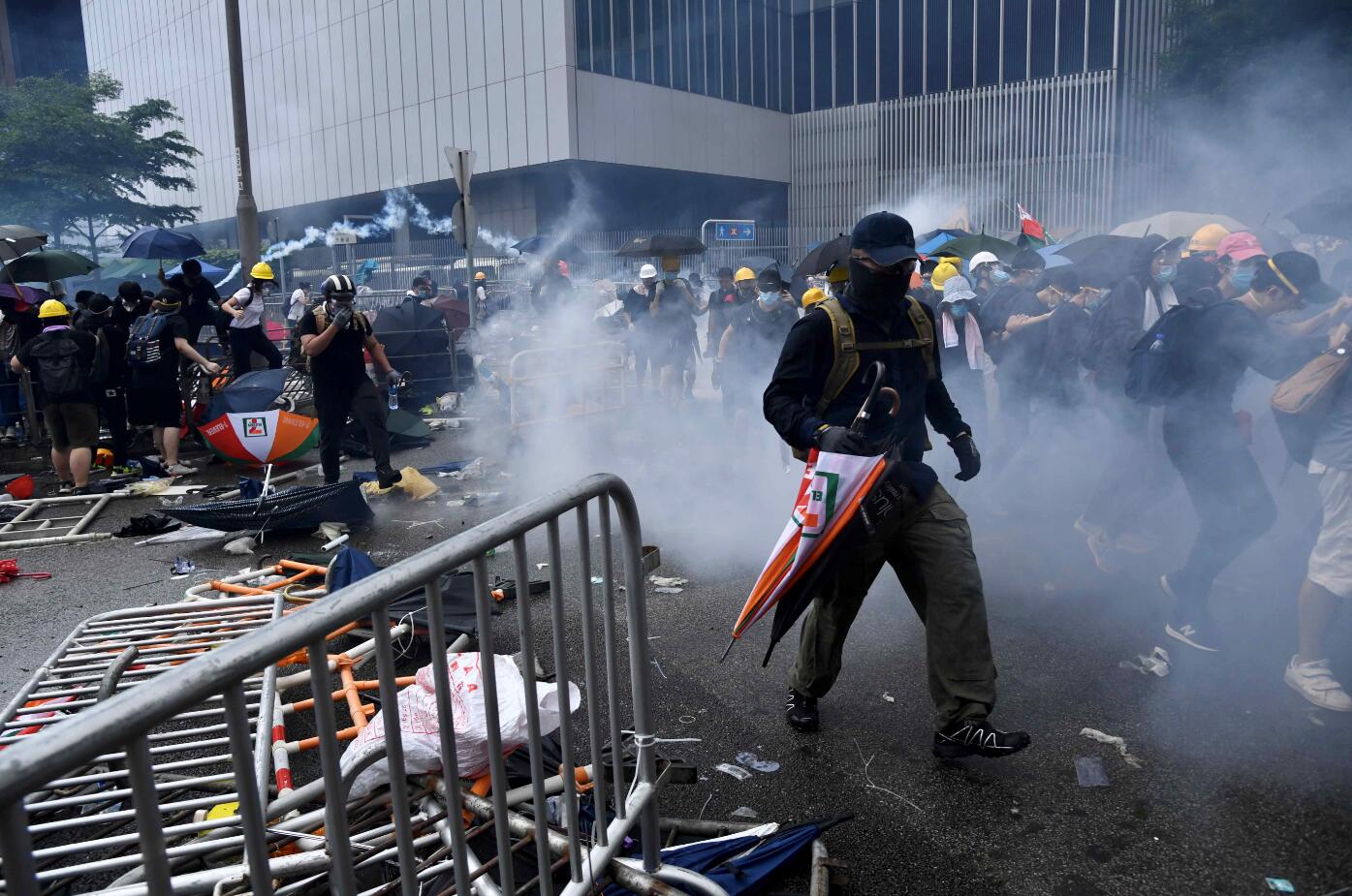【香港商報網訊】記者區天海、林駿強、馮煒強報道:立法會昨日原訂恢復二讀辯論修訂《逃犯條例》草案,大批反對修例的示威者昨晨發動突襲,佔據金鐘夏愨道東西行線及龍和道等主要幹道,重演違法「佔中」情景,期間與大批配備盾牌頭盔等防暴裝備的警員對峙。至下午,示威者化身為暴徒,多番發動攻勢衝擊警方防線,及向警員投擲硬物,警方以催淚彈、布袋彈及橡膠子彈還擊。至傍晚時分,警方終把政總及立法會四周清場,惟示威者未有退卻,至今日淩晨仍然留守中區一帶,與警方繼續對峙。迄至昨日深夜,警方與示威者衝突增至72人受傷 其中2人傷勢嚴重。