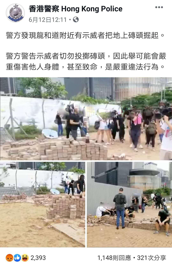他說,下午3時,警方留意到有附近地盤被偷去鐵枝、木板,龍和道地面有大量地磚被掘起,不同示威者衝擊立法會警方防線,更有暴徒用磚頭、鐵枝、鐵馬擲向警員。在場警員在聲明受威脅的情況下,感到生命受到威脅,為了保護自身及他人的人身安全,依從指引使用不同武器驅散人群及控制場面,包括警棍、布袋彈、胡椒噴霧、胡椒彈、催淚水劑、橡膠彈、手擲催淚彈,全部都是低殺傷力武器。