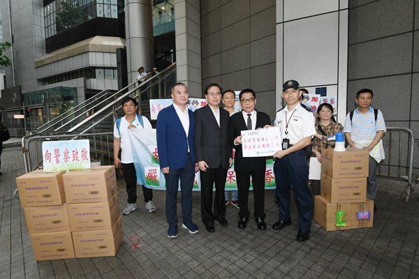 另外,香港福建社團聯會一行約40人,帶同鮮花、果籃前往警察總部慰問警務人員,表示堅決支持警務人員嚴正執法,並向警務人員致敬,還重申了團體支持特區政府修訂《逃犯條例》。