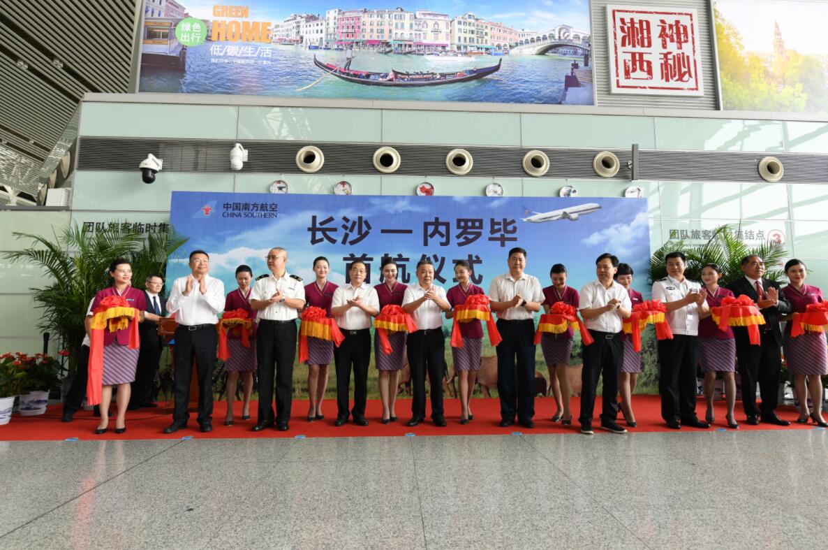 【香港商報網訊】記者 張思靜 報導:11日,湖南長沙至肯雅內羅畢航線首航儀式在長沙黃花機場舉行,儀式後,這條湖南首條直飛非洲的定期航線於12日淩晨起飛,歷經11小時30分鐘的飛行後抵達內羅畢喬莫·肯雅塔國際機場。