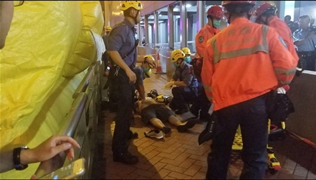 直至昨晚約9時,男子突然往外爬出棚架,消防員欲上前將他救回安全位置,惟男子的衣服鬆脫,意外墮下並倒臥地上,重傷昏迷。救護員隨即為他進行急救,然後將他送往律敦治醫院搶救,最終不治。