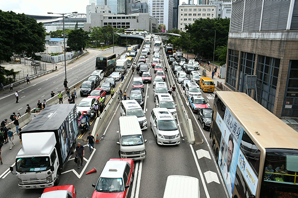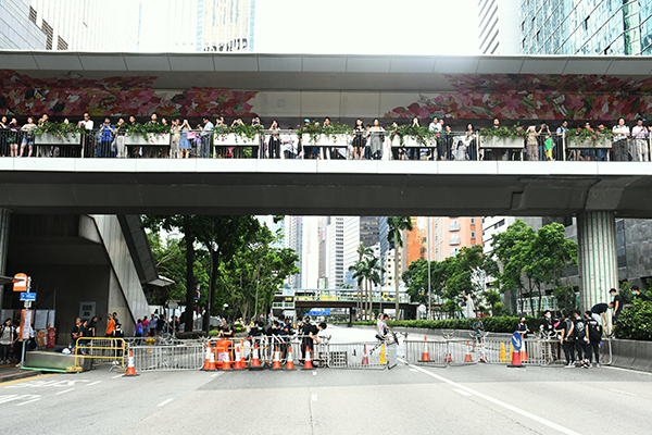昨日上午近11時,示威者從立法會示威區行至金鐘夏慤道,阻塞道路雙向行車線,並以鐵馬、水馬等阻斷道路,造成交通癱瘓。隨後,大批示威者前往警察總部,並包圍警總,用鐵馬等路障封鎖附近主要幹道,佔領軍器廠街,僅留一車道行車,使現場出現行車阻塞情況。下午2時30分許,示威者堵塞入境事務處大樓,靜坐於大樓地下大堂,大樓附近商舖被迫關閉,嚴重阻礙市民通行及工作,大樓內職員提早放工。市民連聲高呼希望示威者不要堵塞大樓,不要阻礙人群正常通行。