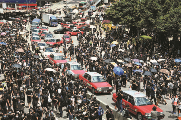 昨日,示威者衝出夏道阻塞道路,使大批汽車不能前進。記者馮瀚文攝