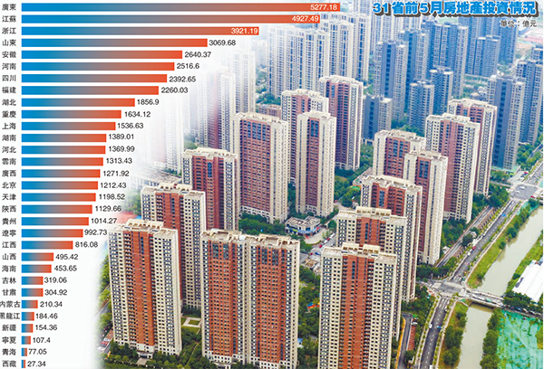 【香港商報網訊】31省份5月房地產開發投資係數出爐,廣東、江蘇、浙江三省前5月房地產投資額依舊領跑,18省份房地產投資增速跑贏全國。不過,分析認為,目前各線城市投資均已出現見頂跡象,預計增速2季度開始逐季回落。