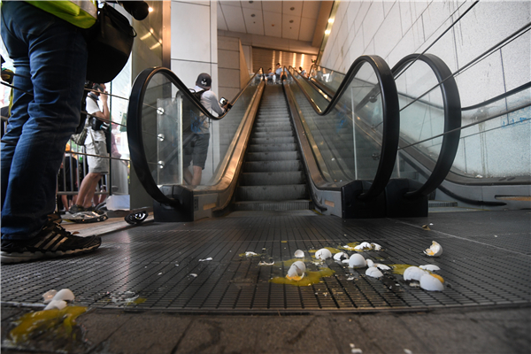 示威者向警察擲雞蛋。攝影:香港商報記者馮瀚文