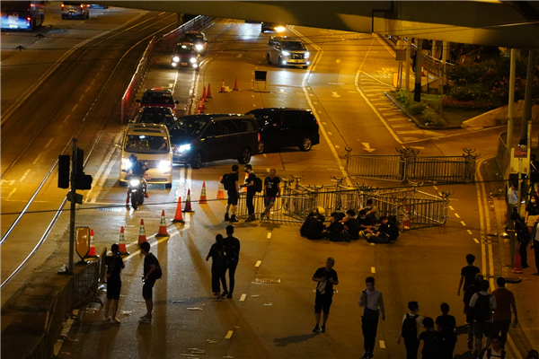 昨晚,示威者阻塞警察總部外的軒尼詩道東行道路。攝影:香港商報記者劉深