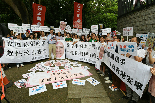 【香港商報網訊】記者周偉立報道:工聯會社會事務委員會一眾成員昨日手持標語到美國駐港澳總領事館示威,對美國駐香港及澳門總領事唐偉康提出抗議,批評美國聯同反對派黑手操作,煽動年輕人擾亂社會,令香港社會再次撕裂,要求美國立即停止。