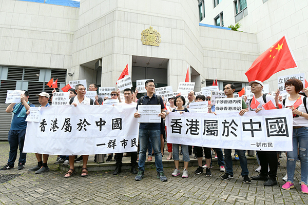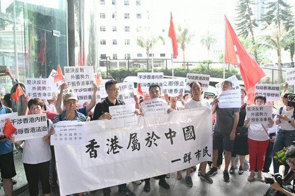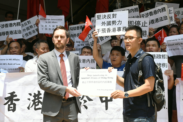 約200名市民由中環遮打花園出發,沿途高喊「反對外國勢力干預香港事務,香港事務香港人自己解決」口號,遊行到美國、歐盟、英國及德國駐港總領事館,表明支持修訂《逃犯條例》,要求外國尊重中國主權及遵守不干涉別國內政的國際規則,及停止以任何形式干預香港事務及中國內政。他們又表示,不能接受前日有大批市民到外國領事館,要求外國勢力介入香港事務。