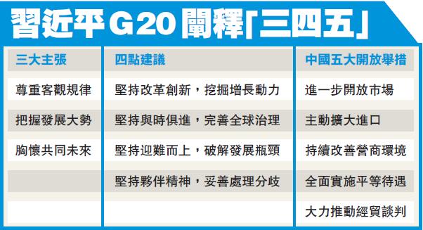 第三,堅持迎難而上,破解發展瓶頸。中國提出共建「一帶一路」倡議,目的就是動員更多資源,拉緊互聯互通紐帶,釋放增長動力,實現市場對接,讓更多國家和地區融入經濟全球化。二十國集團應該繼續將發展置於宏觀經濟政策協調的優先位置,增加發展投入。