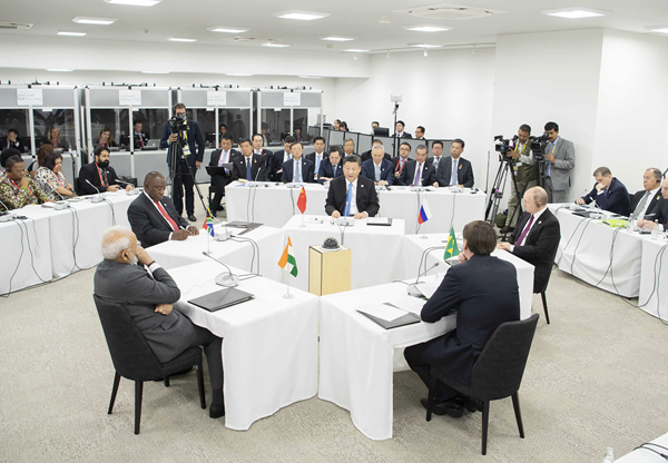 國家主席習近平昨日在大阪主持中非領導人會晤。中非合作論壇前任非方共同主席國南非總統拉馬福薩、非洲聯盟輪值主席國埃及總統塞西、中非合作論壇現任非方共同主席國塞內加爾總統薩勒和聯合國秘書長古特雷斯出席。