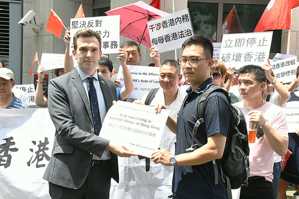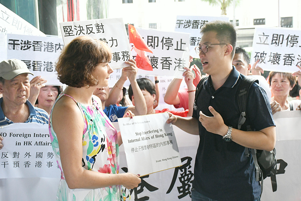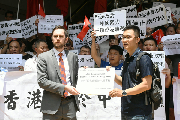 【香港商報网訊】記者周偉立報道:大批市民昨日遊行到多個外國駐港總領事館請願,反對外國干預香港事務。他們指,美國近日不尋常地多次就香港事務發表言論是別有用心;並強調,香港特區政府已經暫緩修訂《逃犯條例》,以便讓社會盡快恢復秩序和平靜,但如何處理《逃犯條例》是香港的內部事務,外國必須尊重中國主權及遵守「不干涉別國內政」的國際規則,停止干預香港事務和中國內政。