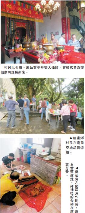 易新來出任樊仙廟司理約廿年,但在未成為司理前,就已幫誕會籌款,對象是大埔墟富善街的商戶,他笑言像極沿門乞食,講到口水乾。同樣有向商戶籌款的司理馬家強(亦是上碗窰居民代表)則對當年的目標商戶如數家珍,「有華利竹篾、劉長記棉被、華南紙紮舖、梁和豐紙紮店、柱興餅店等等,好多都已結業了。」當時寶誕還設「金豬會」,一份300元,有戲票一張、燈籠仔、一斤燒肉、拜過神的包仔、生果等,上碗窰村有100份,其他村200份,合共300份,金豬會的錢就用於誕會,再加商戶捐款(500元或以上),寶誕就辦得成了。