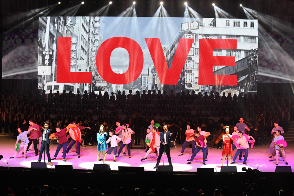【香港商報网訊】記者餘江強報道:由香港各界慶典委員會、香港匯演藝能發展中心聯合舉辦的「躍動大灣區──慶祝香港回歸祖國22周年晚會」昨晚假香港體育館隆重舉行,中聯辦副主任何靖、外交部副特派員趙建凱、駐港部隊副司令員田永江少將、青海省人民政府副省長楊逢春、民政事務局局長劉江華、食物及衛生局局長陳肇始、香港各界慶委會署理執行主席陳勇、香港匯演藝能發展中心主席莊戰等主禮,來自粵港澳大灣區城市深圳、江門的表演團體、駐港部隊及香港樂壇紅星傾力演出,節目豐富,精彩紛呈,極視聽之娛,齊心共慶回歸。