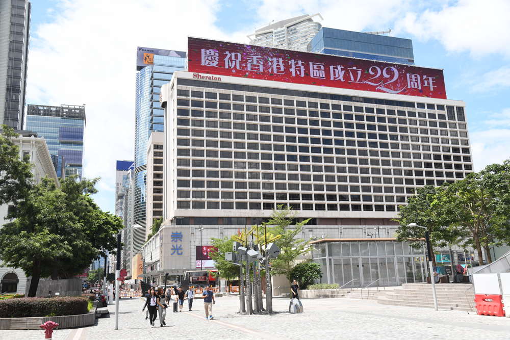 尖沙咀喜來登酒店頂大型顯示屏播字句慶回歸。記者崔俊良攝