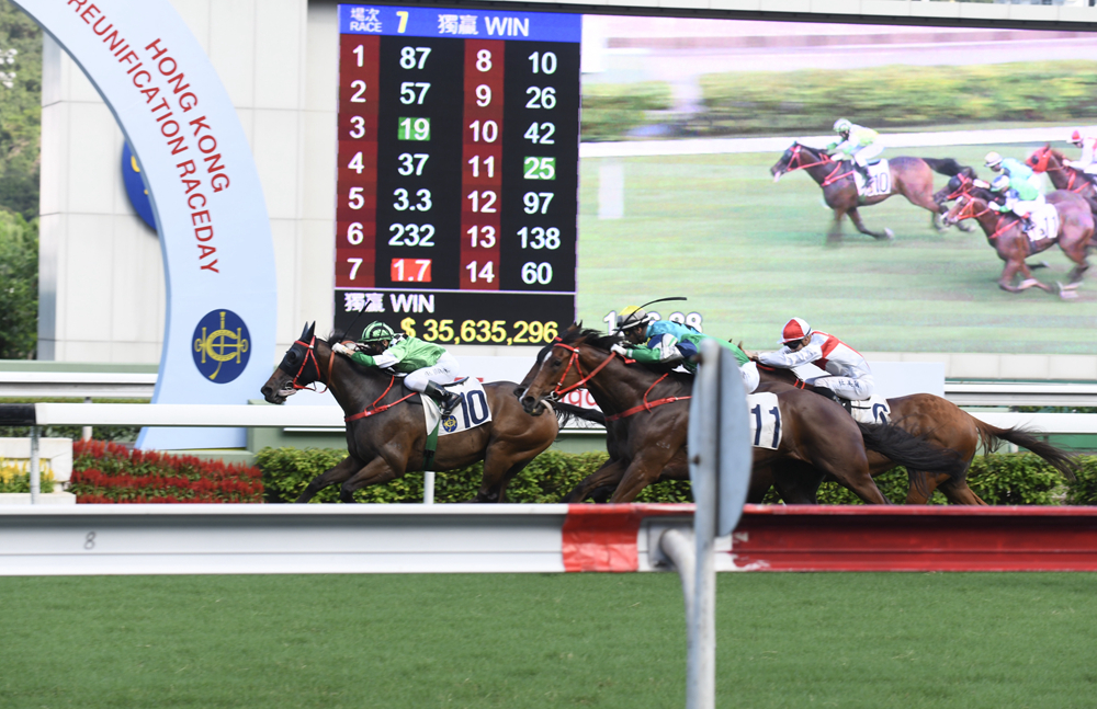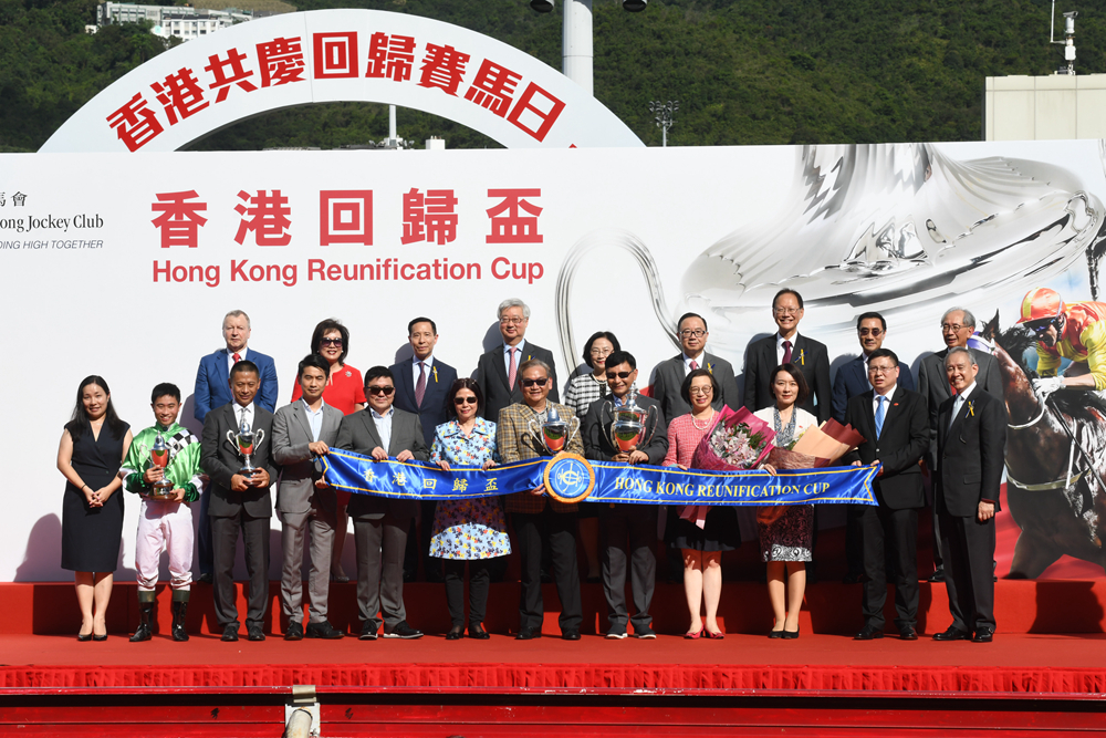 另一方面,香港賽馬會於昨日在沙田馬場再度舉辦「香港共慶回歸賽馬日」活動,並舉行兩場重點賽事,包括第七場的「香港回歸盃」及第六場的「粵港盃」,吸引成千上萬馬迷進場觀賞,一起感受回歸的喜悅。「香港回歸盃」由沈集成訓練、巫顯東策騎的「環保動力」勝出;「粵港盃」則由約翰摩亞訓練、潘頓策騎的「二郎」奪冠。