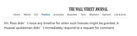 最后,路透社和《华尔街日报》都认为,那些想与华为继续进行业务往来的美国企业,看来还是得先向美国商务部提交许可申请,再由该部决定究竟什么样的交易可以被允许了。