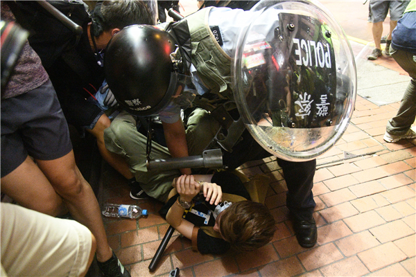 防暴警在山東街拘捕一名企圖襲警的示威者。記者蔡啓文攝
