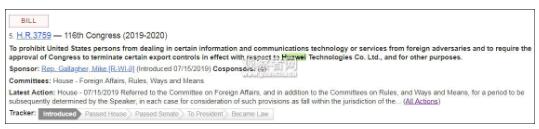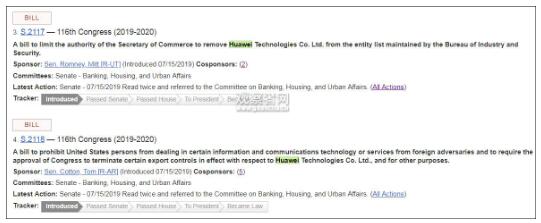 “禁止美国个人与外国敌人进行相关信息、通讯技术、服务的交易”。第二条法案还规定,针对华为的出口控制若需要解除,需要得到国会批准。
