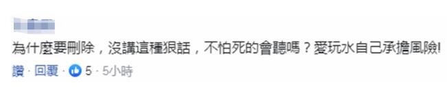 【环球网报道 记者 付国豪】台“海委会”16日发布了一则台风警告文章,警告在海边“泛舟或冲浪”的人要自备“塔位(指骨灰龛中的骨灰存放位)”“诀别书”,还说“我可能不会救你”。这些争议语句招来冲浪运动爱好者留言抗议后,“海委会”对文章进行了修改,将“泛舟或冲浪”改成了“吃火锅、看夕阳”,但仍保留“自备塔位”“我可能不会救你”等语句。