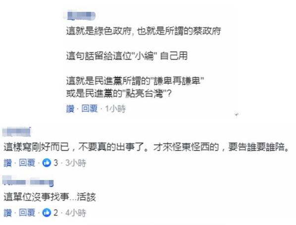 更有人讽刺蔡英文当局:“这就是绿色政府”;“这单位没事找事,活该”。