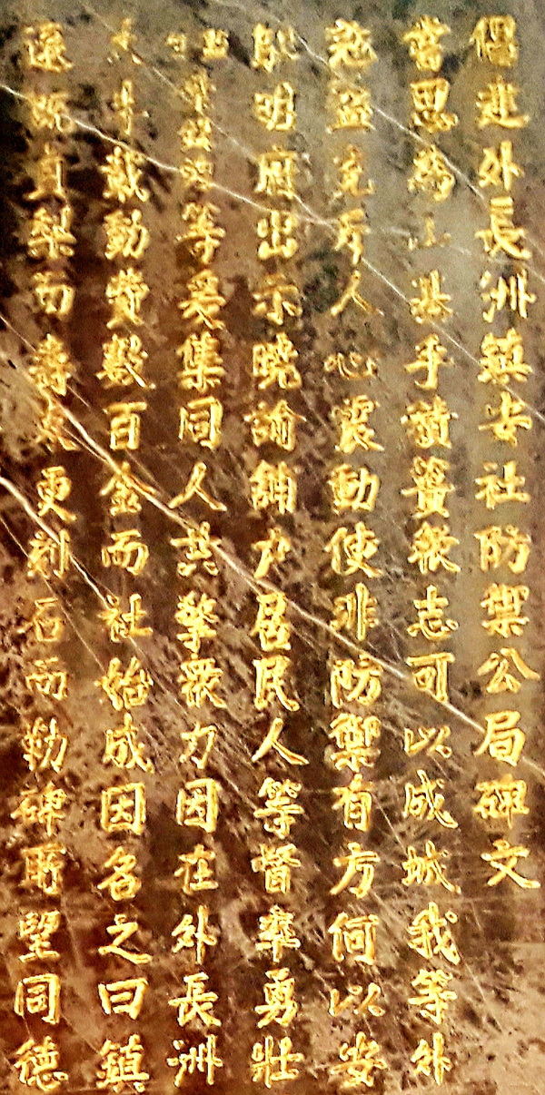 1863年長洲鄉紳籌建「外長洲鎮安社防禦公局」的石碑,現置放於長洲寶安會所。