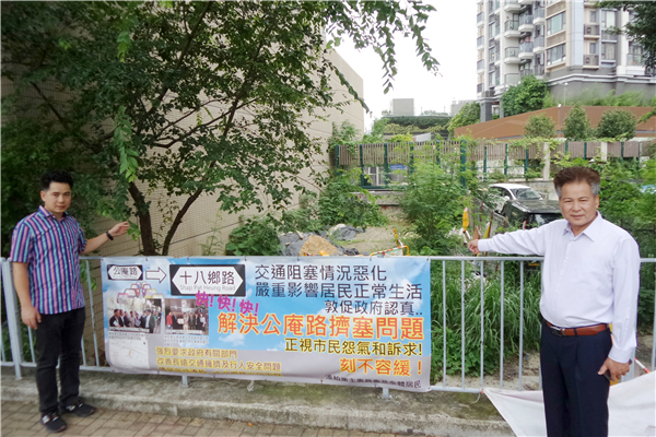 第二,公庵路與十八鄉路交匯處周邊近幾年興建溱柏、原築大型屋苑,兩個屋苑共有570個車位,相信每天有幾百輛私家車經臨時出入處駛入公庵路。梁福元指出,當年原規劃一條公路是不經公庵路、十八鄉路交匯處燈位,可直接入十八鄉路的屋苑車輛出入口,該出入口長約20米、寬約5米,惟該處因地下有電纜、渠務管道,地面有樹木,涉及中電、渠務、路政、康文及民事等多個公私營機構,3年來各部門協調不了,遲遲未有開展工程,造成日日逾百車輛迫爆公庵路。記者當日下午5時於交匯處燈位所見,每次紅燈亮時,各類車輛排起長龍,而在十八鄉路上的車輛同樣有車龍,每當綠燈亮起,車輛一輛接一輛駛過,如果遇上一輛車「死火」,塞車至幾公里外,東段車道至蝶翠峰,西段車道則到元朗體育路。