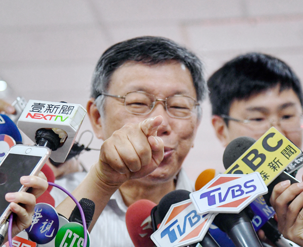 台灣學者認為,柯文哲支持郭台銘,可藉助其財力壯大民眾黨。中央社
