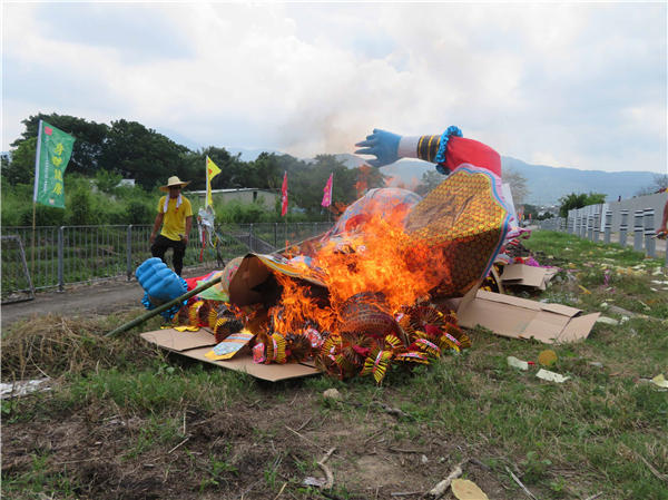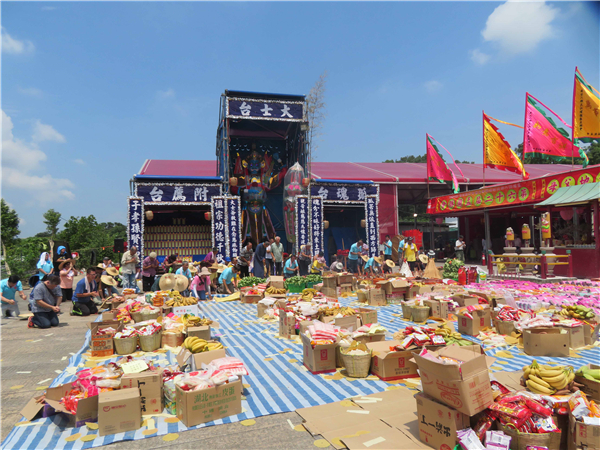 勝會最後一天舉行盂蘭拜祭活動,廣場上鋪滿祭品,參與者正誠心敬拜。記者 鄭玉君攝