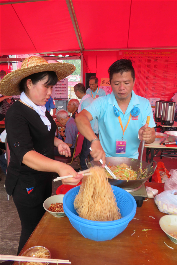 聚居錦田大江埔的潮籍人士,自1958年起每年舉辦潮僑盂蘭勝會(簡稱勝會),近年隨非物質文化遺產受到重視,勝會增添不少文化色彩。如去年已加入潮州工夫茶及潮州話工作坊,今年更進一步,有潮州食物製作示範包括炒潮州麵及做潮州粿。大江埔潮僑盂蘭會總理徐嘉興表示,近年有些青年加入做勝會籌備骨幹成員,如食物製作示範就是由最年輕成員、負責文書的顏文龍提出。他指出這是好事,避免出現青黃不接,令傳統文化得以傳承。 香港商報記者 鄭玉君