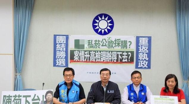 据香港中评社报道,国民党“立法院”党团当天上午举行“私烟公款采购?案情升高检调办得下去?”记者会,出席人员包括国民党团总召曾铭宗、“立委”费鸿泰、赖士葆及林奕华,他们出示来自蔡办内部的检举信函及信封,要求检调、审计部门尽速查清。