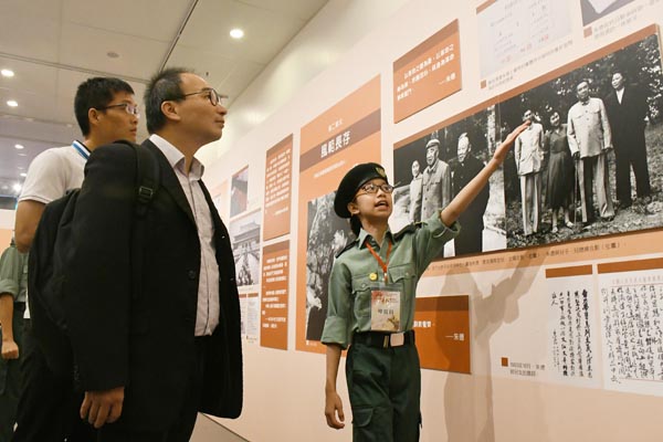 是次展覽特別邀請了50名身為香港青少年軍成員的中小學生擔任導賞員。他們都穿上整齊制服,戴上貝雷帽,負責在各個展覽攤位向參觀者以廣東話或普通話作出解說。他們舉手投足之間,予人感覺一新,顯然曾經接受訓練。就讀中三的導賞員陳耀明表示,自己生於幸福時代,但知道所享受的幸福來之不易,是一批革命先烈的努力付出換來的,認為要了解這些先烈,才能更好認識歷史。他希望參與是次解說活動更好認識建國偉人,學習他們的愛國精神。