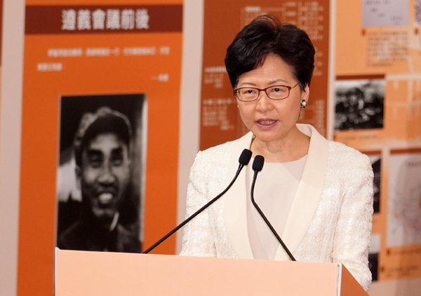 【香港商報網訊】記者馮煒強報道:行政長官林鄭月娥昨日出席「開國元勛朱德總司令(香港)大型展覽」致辭時表示,面對目前暴力升級、激進示威者的大規模破壞行動,我們必須堅定信心,擔當「一國兩制」的捍衛者,以法治止暴制亂,盡快讓香港的社會回復平靜。中聯辦副主任盧新寧,外交部駐港特派員公署副特派員宋如安,立法會主席梁君彥,以及朱德之孫朱和平等出席當日的開幕禮。