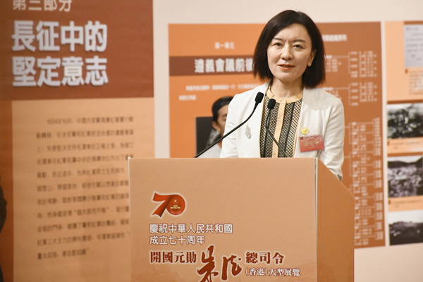 林鄭致辭指出,今年是中華人民共和國成立70周年,國家在不同範疇均取得輝煌成就,地位舉足輕重,有目共睹,讓人驕傲。國家今天的成就絕非僥倖,而是有賴好像朱德總司令等眾先賢的努力不懈,打穩根基,我們這一代才有機會共同見證國家的長足發展、共享國家宏偉基業為我們帶來的豐碩成果。