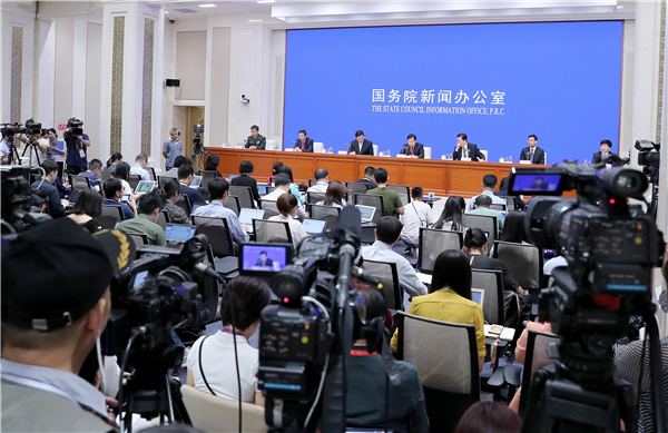 國新辦昨在北京舉行慶祝中華人民共和國成立70周年發布會,指出將適度設計閱兵規模,並安排部分先進武器裝備首次亮相。 中新社