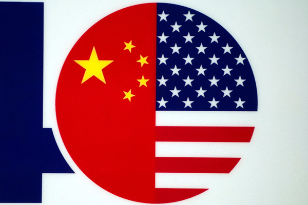圖為中美雙方7月在上海談判期間,上海路邊的兩國國旗。 資料圖片