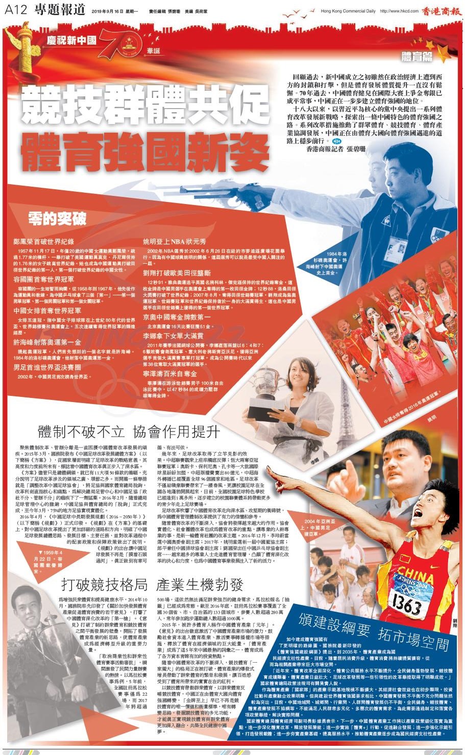 回顧過去,新中國成立之初雖然在政治經濟上遭到西方的封鎖和打擊,但是體育發展體質提升一直沒有鬆懈。70年過去,中國體育健兒在國際大賽上爭金奪銀已成平常事,中國正在一步步建立體育強國的地位。
