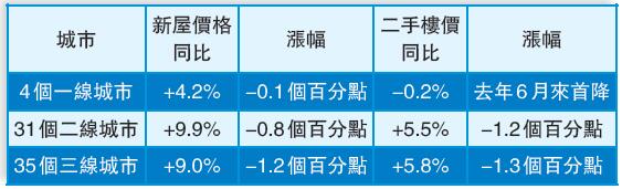 值得一提的是,一線城市二手住宅銷售價格同比下降0.2%,是各項指標中唯一為負數的一項,亦是去年6月以來的首次轉降,其中,廣州二手住宅銷售價格同比下降2個百分點,北京下降0.9個百分點。