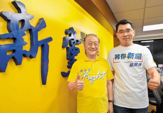 新党主席郁慕明(左)与新党2020参选人杨世光(右)。(图源:台湾“中时电子报”)