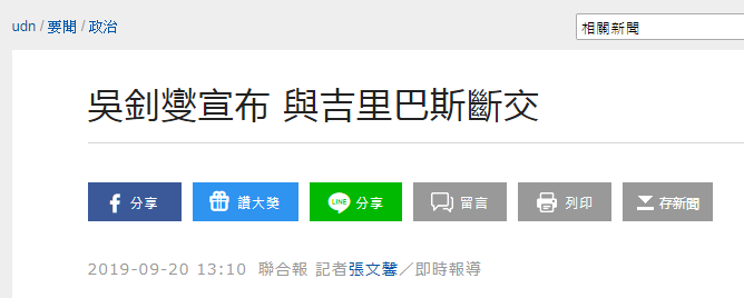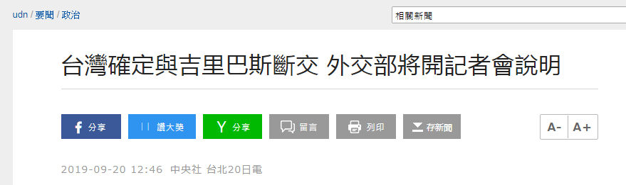 此外,台灣《旺報》在3月的報道中也曾提到,基裏巴斯與台灣的“邦交”“拉響警報”。