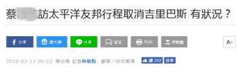 實際上,台媒早前就曾在報道中對基裏巴斯與台當局關系提出懷疑。據台灣《聯合報》報道,今年3月,蔡英文“出訪”太平洋所謂的“友邦”,原訂要訪問基裏巴斯的行程最後取消,台“外交部”當時稱因時程配合的技術性問題。而《聯合報》則在報道中提出質疑,“有狀況?”