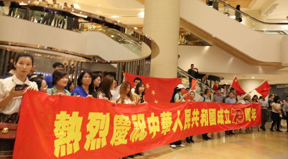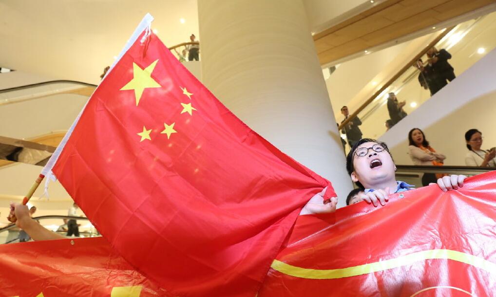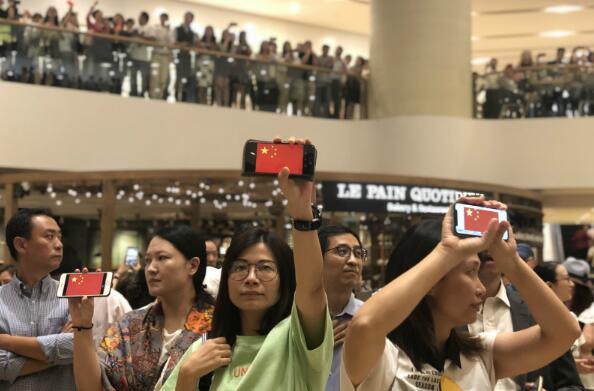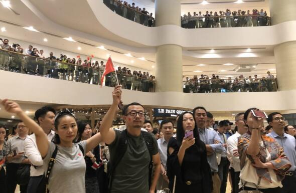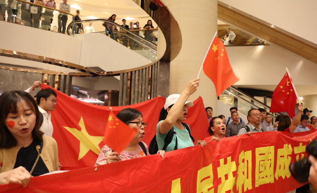 【香港商报网讯】數百名市民在金鐘太古廣場中庭唱國歌及《歌唱祖國》,高呼「撐警察、反暴力」「祖國生日快樂」「中國香港加油」等口號。該批民眾只帶了數面國旗及橫幅,未有如此前「快閃」般攜帶大量小型國旗,而是以手機熒幕展示國旗照片。