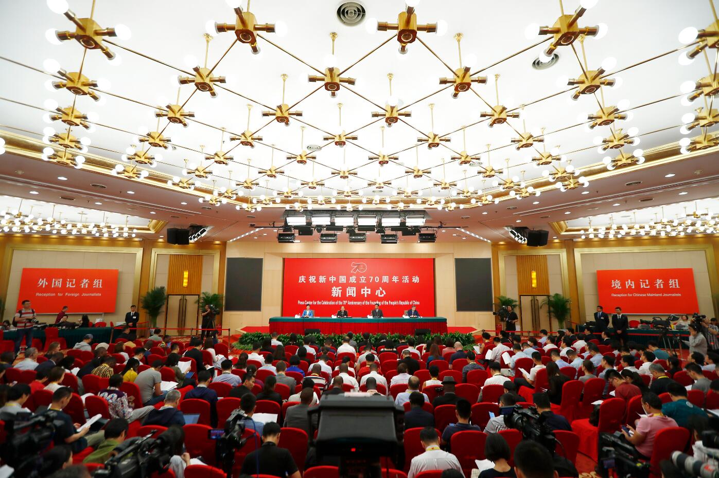 慶祝中華人民共和國成立70周年活動的首場新聞發布會。 中新社
