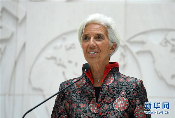 2016 年, IMF總裁拉加德穿着唐裝宣布將人民幣納入SDR。資料圖片