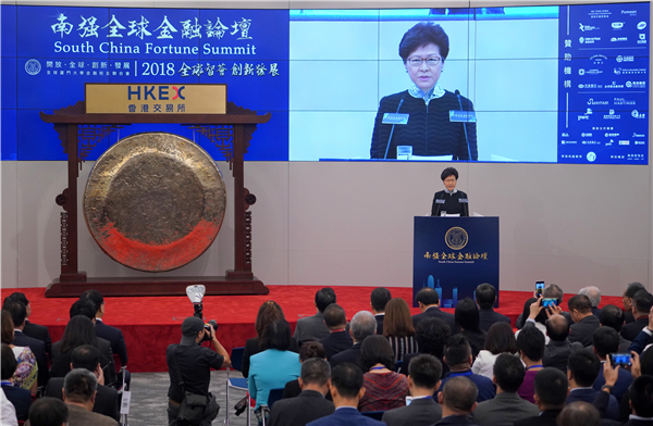2018年,特首林鄭月娥表示香港擁有全球最大的離岸人民幣資金池。資料圖片