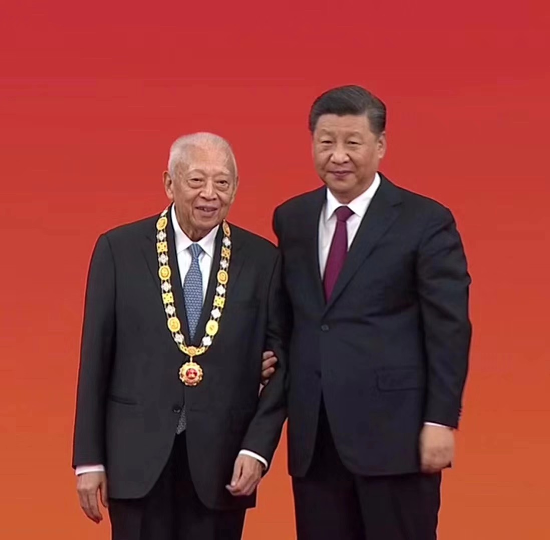 習近平向董建華授予「『一国两制』杰出贡献者」国家荣誉称号獎章。