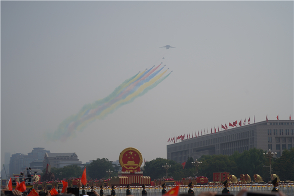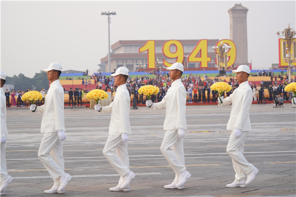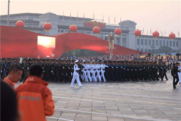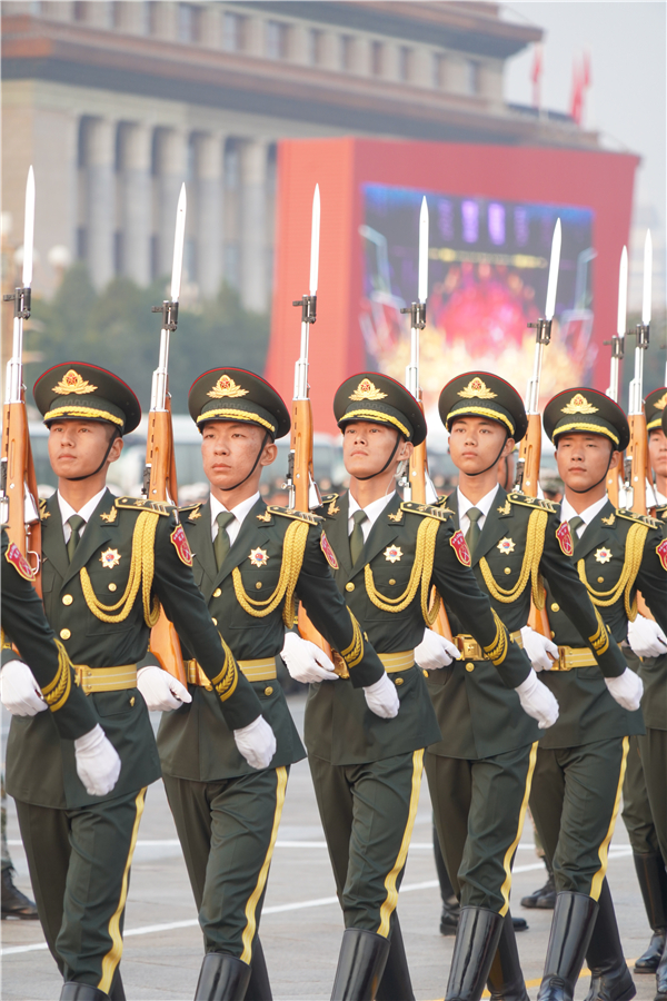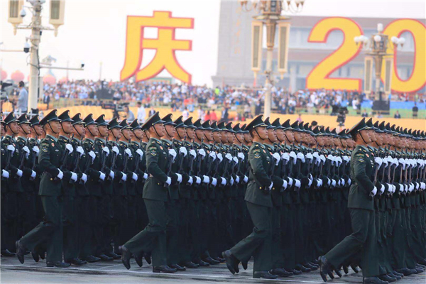 中国的昨天已经写在人类的史册上,中国的今天正在亿万人民手中创造,中国的明天必将更加美好。全党全军全国各族人民要更加紧密地团结起来,不忘初心,牢记使命,继续把我们的人民共和国巩固好、发展好,继续为实现“两个一百年”奋斗目标、实现中华民族伟大复兴的中国梦而努力奋斗!