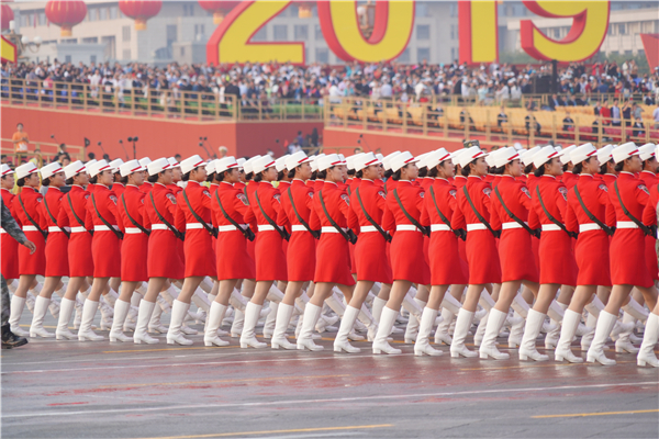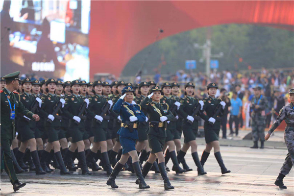 女兵方队接受检阅